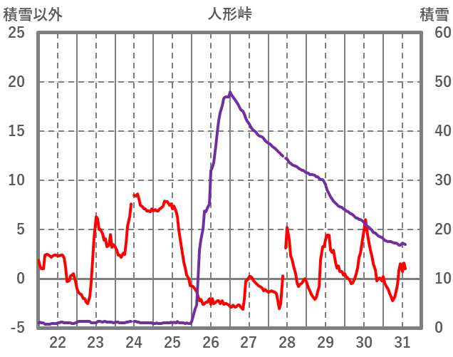| 日 | 時 | 気温 | 降水 | 風向/風速 | 日照 | 積雪 | 降雪 |