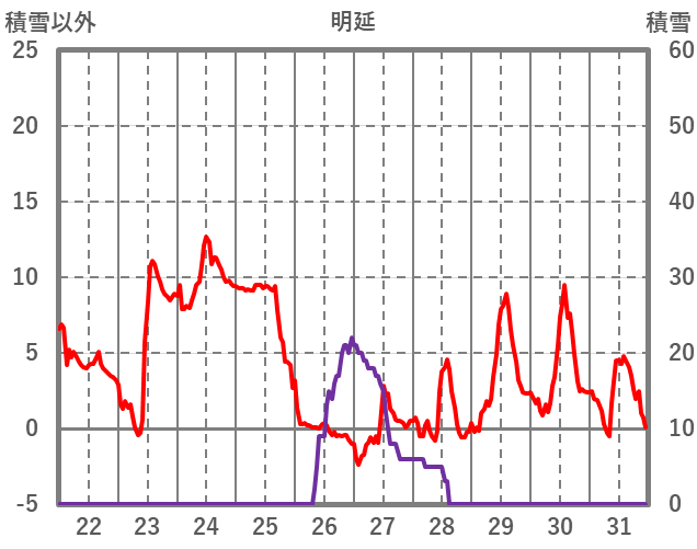| 日 | 時 | 気温 | 降水 | 風向/風速 | 日照 | 積雪 | 降雪 |