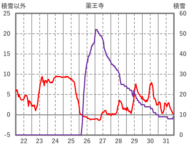 | 日 | 時 | 気温 | 降水 | 風向/風速 | 日照 | 積雪 | 降雪 |