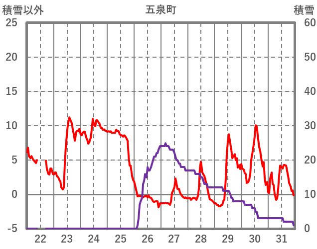 | 日 | 時 | 気温 | 降水 | 風向/風速 | 日照 | 積雪 | 降雪 |