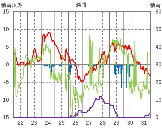 | 日 | 時 | 気温 | 降水 | 風向/風速 | 日照 | 積雪 | 降雪 |