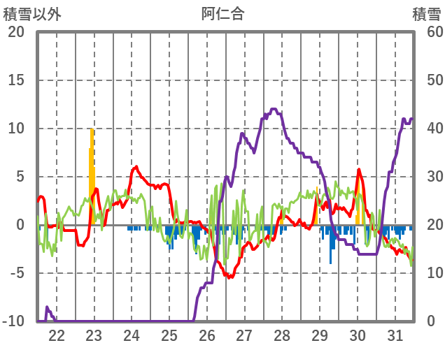 | 日 | 時 | 気温 | 降水 | 風向/風速 | 日照 | 積雪 | 降雪 |