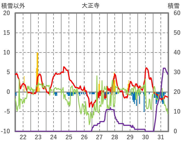 | 日 | 時 | 気温 | 降水 | 風向/風速 | 日照 | 積雪 | 降雪 |