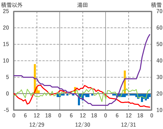 | 日 | 時 | 気温 | 降水 | 風向/風速 | 日照 | 積雪 | 降雪 |
