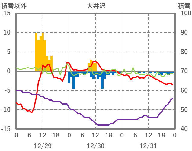 | 日 | 時 | 気温 | 降水 | 風向/風速 | 日照 | 積雪 | 降雪 |