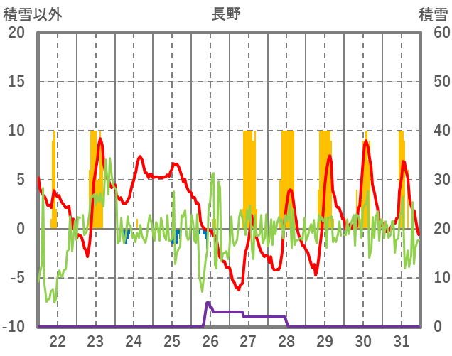 | 日 | 時 | 気温 | 降水 | 風向/風速 | 日照 | 積雪 | 降雪 |