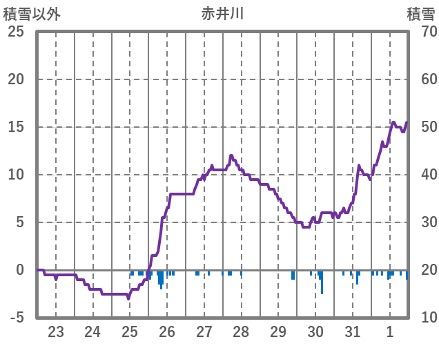 | 日 | 時 | 気温 | 降水 | 風向/風速 | 日照 | 積雪 | 降雪 |