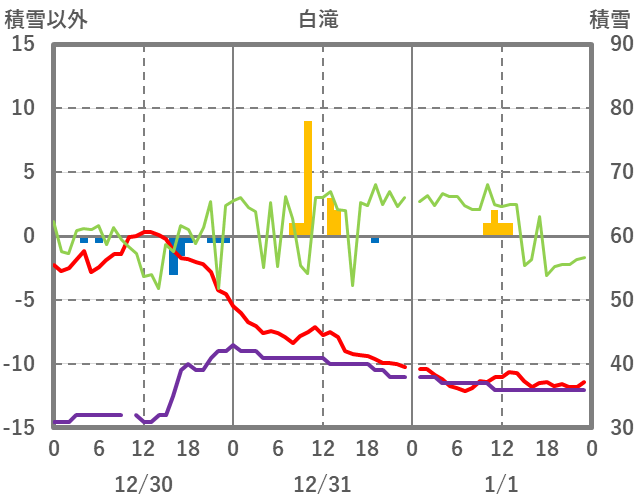 | 日 | 時 | 気温 | 降水 | 風向/風速 | 日照 | 積雪 | 降雪 |