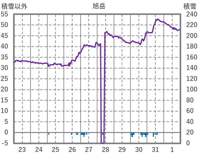 | 日 | 時 | 気温 | 降水 | 風向/風速 | 日照 | 積雪 | 降雪 |