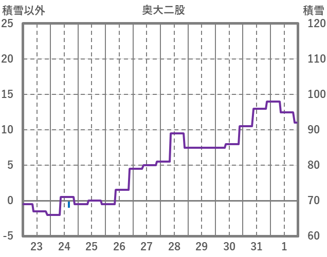 | 日 | 時 | 気温 | 降水 | 風向/風速 | 日照 | 積雪 | 降雪 |