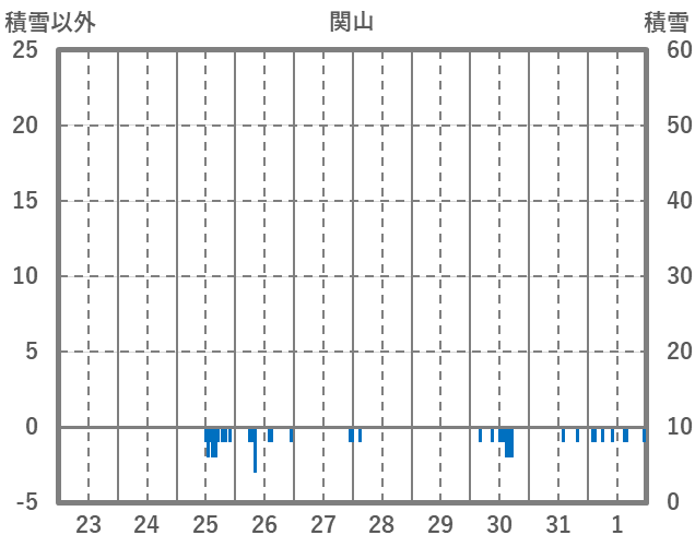 | 日 | 時 | 気温 | 降水 | 風向/風速 | 日照 | 積雪 | 降雪 |