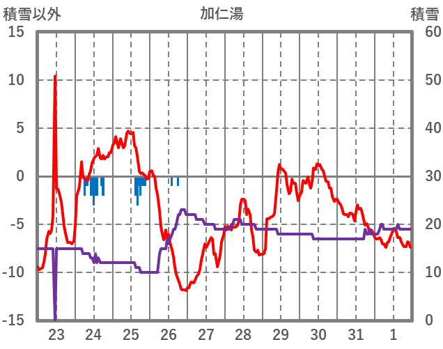 | 日 | 時 | 気温 | 降水 | 風向/風速 | 日照 | 積雪 | 降雪 |