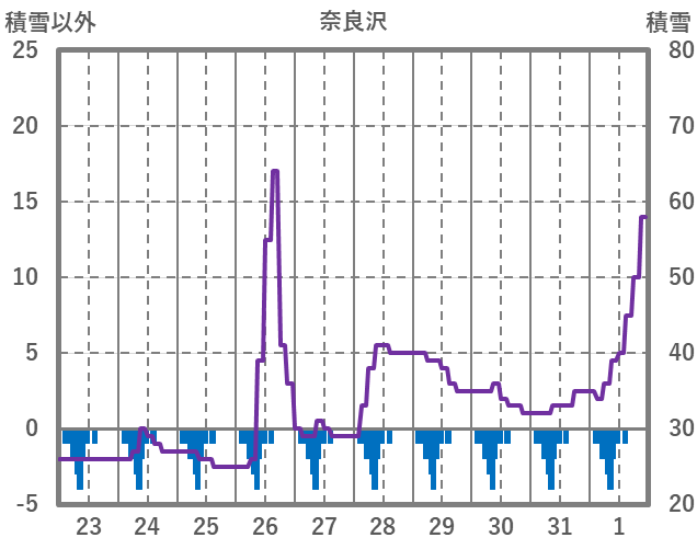 | 日 | 時 | 気温 | 降水 | 風向/風速 | 日照 | 積雪 | 降雪 |