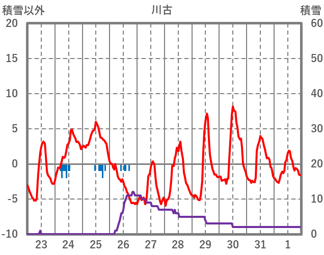 | 日 | 時 | 気温 | 降水 | 風向/風速 | 日照 | 積雪 | 降雪 |