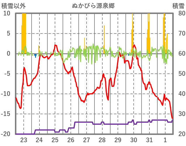 | 日 | 時 | 気温 | 降水 | 風向/風速 | 日照 | 積雪 | 降雪 |