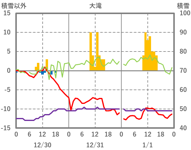 | 日 | 時 | 気温 | 降水 | 風向/風速 | 日照 | 積雪 | 降雪 |