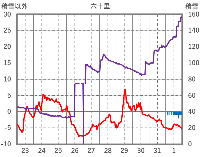 | 日 | 時 | 気温 | 降水 | 風向/風速 | 日照 | 積雪 | 降雪 |