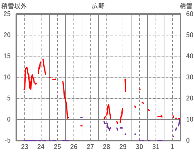 | 日 | 時 | 気温 | 降水 | 風向/風速 | 日照 | 積雪 | 降雪 |