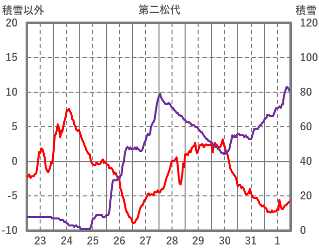 | 日 | 時 | 気温 | 降水 | 風向/風速 | 日照 | 積雪 | 降雪 |