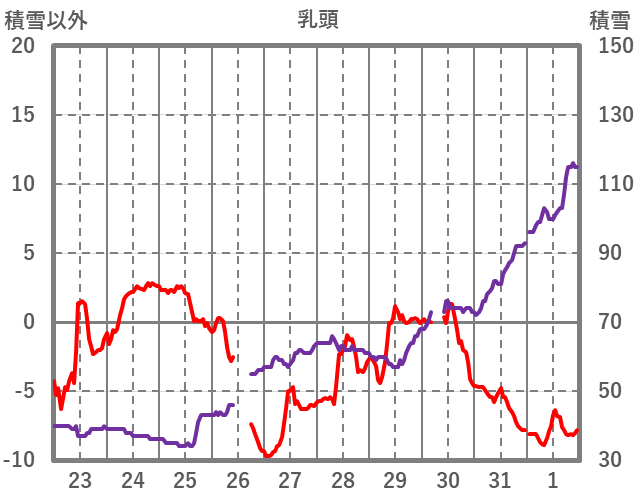 | 日 | 時 | 気温 | 降水 | 風向/風速 | 日照 | 積雪 | 降雪 |