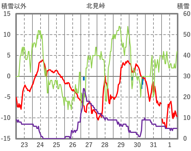 | 日 | 時 | 気温 | 降水 | 風向/風速 | 日照 | 積雪 | 降雪 |
