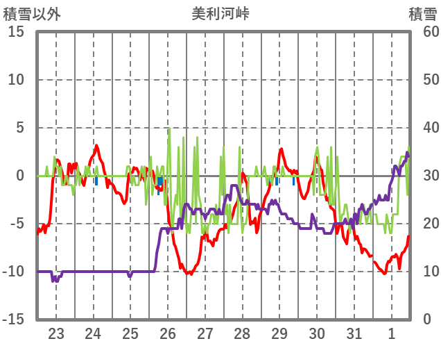 | 日 | 時 | 気温 | 降水 | 風向/風速 | 日照 | 積雪 | 降雪 |