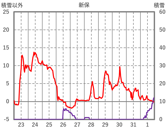 | 日 | 時 | 気温 | 降水 | 風向/風速 | 日照 | 積雪 | 降雪 |
