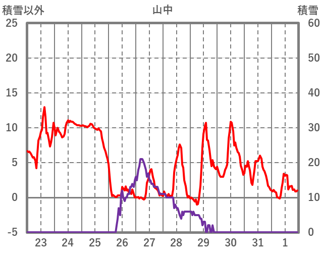| 日 | 時 | 気温 | 降水 | 風向/風速 | 日照 | 積雪 | 降雪 |