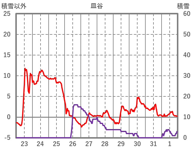 | 日 | 時 | 気温 | 降水 | 風向/風速 | 日照 | 積雪 | 降雪 |
