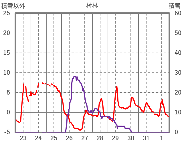 | 日 | 時 | 気温 | 降水 | 風向/風速 | 日照 | 積雪 | 降雪 |