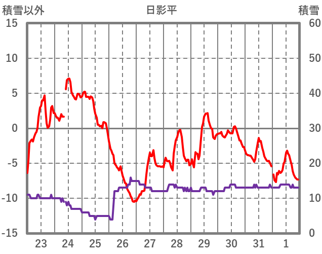 | 日 | 時 | 気温 | 降水 | 風向/風速 | 日照 | 積雪 | 降雪 |