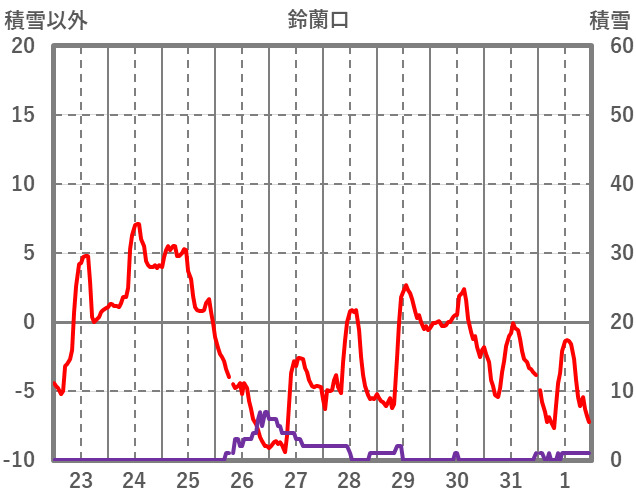 | 日 | 時 | 気温 | 降水 | 風向/風速 | 日照 | 積雪 | 降雪 |