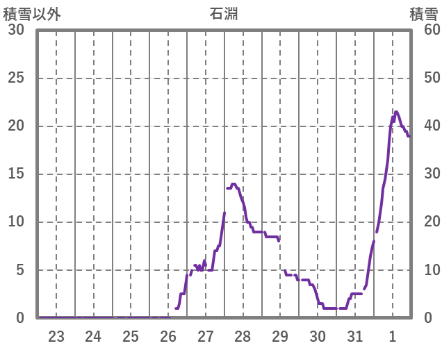 | 日 | 時 | 気温 | 降水 | 風向/風速 | 日照 | 積雪 | 降雪 |
