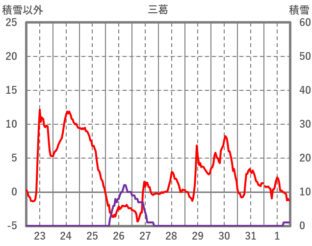 | 日 | 時 | 気温 | 降水 | 風向/風速 | 日照 | 積雪 | 降雪 |