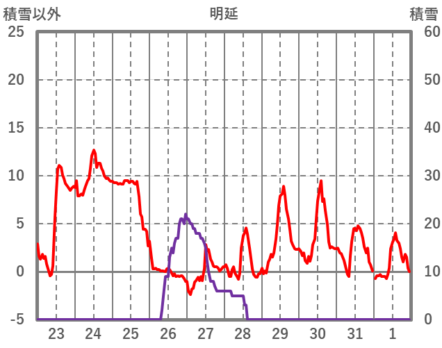 | 日 | 時 | 気温 | 降水 | 風向/風速 | 日照 | 積雪 | 降雪 |