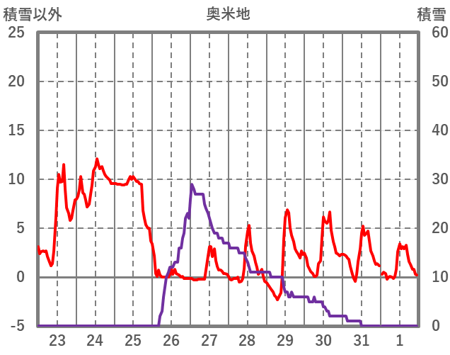 | 日 | 時 | 気温 | 降水 | 風向/風速 | 日照 | 積雪 | 降雪 |