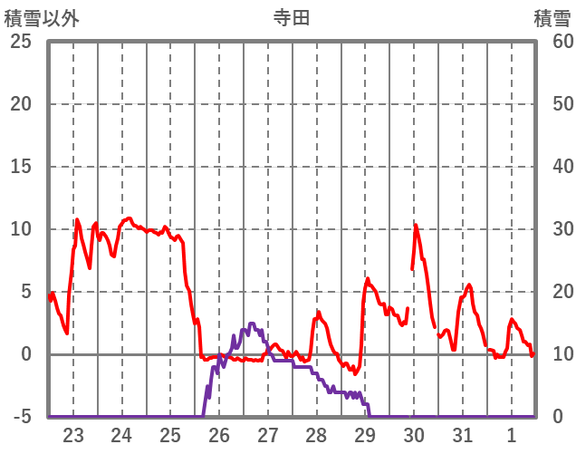 | 日 | 時 | 気温 | 降水 | 風向/風速 | 日照 | 積雪 | 降雪 |