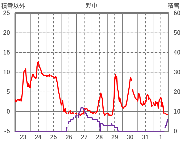 | 日 | 時 | 気温 | 降水 | 風向/風速 | 日照 | 積雪 | 降雪 |