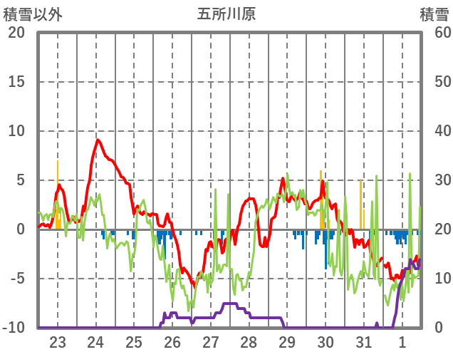 | 日 | 時 | 気温 | 降水 | 風向/風速 | 日照 | 積雪 | 降雪 |