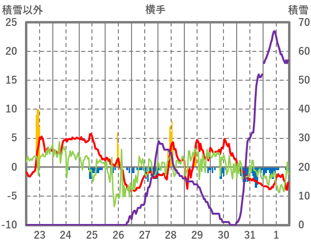 | 日 | 時 | 気温 | 降水 | 風向/風速 | 日照 | 積雪 | 降雪 |