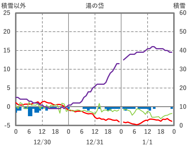 | 日 | 時 | 気温 | 降水 | 風向/風速 | 日照 | 積雪 | 降雪 |