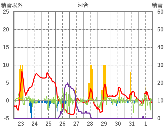 | 日 | 時 | 気温 | 降水 | 風向/風速 | 日照 | 積雪 | 降雪 |