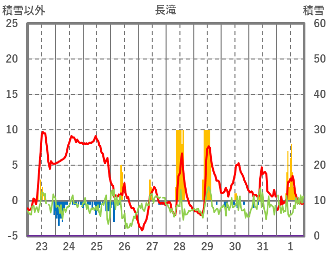 | 日 | 時 | 気温 | 降水 | 風向/風速 | 日照 | 積雪 | 降雪 |
