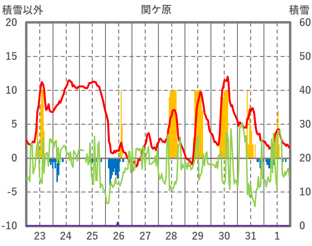 | 日 | 時 | 気温 | 降水 | 風向/風速 | 日照 | 積雪 | 降雪 |