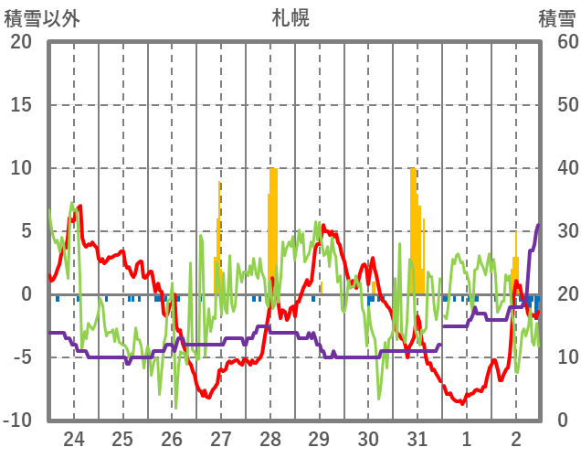 | 日 | 時 | 気温 | 降水 | 風向/風速 | 日照 | 積雪 | 降雪 |
