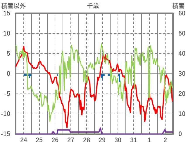 | 日 | 時 | 気温 | 降水 | 風向/風速 | 日照 | 積雪 | 降雪 |