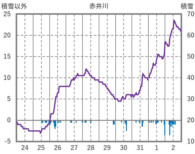 | 日 | 時 | 気温 | 降水 | 風向/風速 | 日照 | 積雪 | 降雪 |