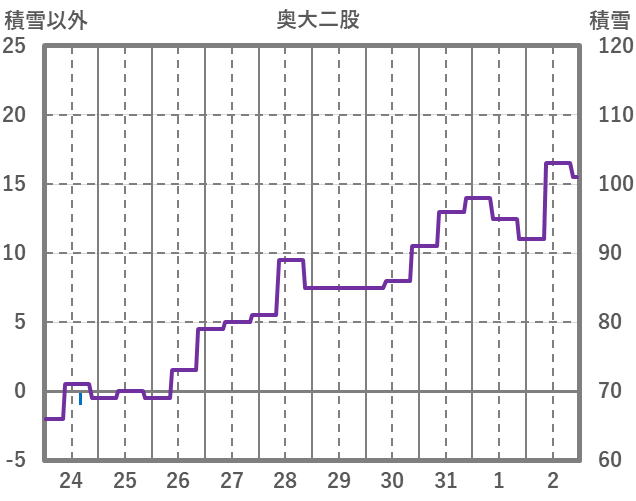| 日 | 時 | 気温 | 降水 | 風向/風速 | 日照 | 積雪 | 降雪 |