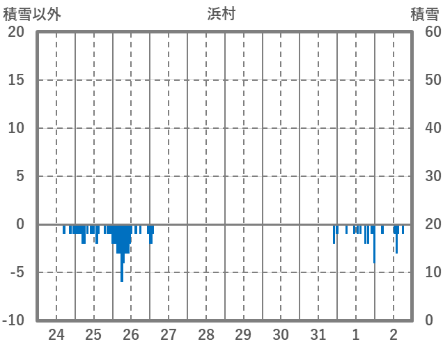 | 日 | 時 | 気温 | 降水 | 風向/風速 | 日照 | 積雪 | 降雪 |