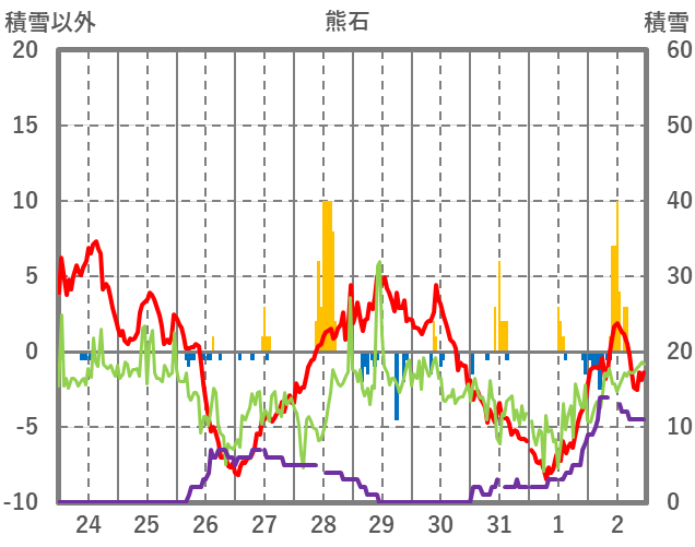 | 日 | 時 | 気温 | 降水 | 風向/風速 | 日照 | 積雪 | 降雪 |